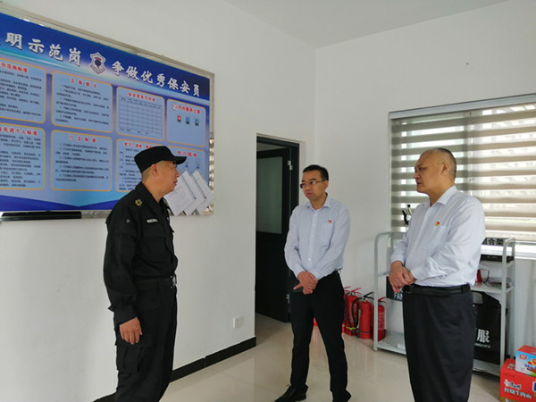 上午8時(shí)許,公司領(lǐng)導(dǎo)班子首先來到公司聯(lián)網(wǎng)報(bào)警指揮中心,看望了值班的同志,詢問了聯(lián)網(wǎng)報(bào)警系統(tǒng)運(yùn)行情況。隨后,分為三組,分別到特保大隊(duì)中國文字博物館、殷墟博物苑,人防殷都檢察院、聯(lián)通公司,守押一大隊(duì)、五大隊(duì)駐地,鼎誠物業(yè)吉祥家園,技防國藥控股,藍(lán)盾駕校、鼎信公司,對堅(jiān)守在工作崗位的員工進(jìn)行了慰問。每到一處,公司領(lǐng)導(dǎo)都會詳細(xì)詢問員工生活和工作情況。王高峰在聯(lián)通公司崗點(diǎn),詢問了文明標(biāo)準(zhǔn)崗創(chuàng)建情況,鼓勵(lì)他們積極創(chuàng)優(yōu)爭先;在守押一大隊(duì)駐地,聽取了石培瑞到任后的工作進(jìn)展、車況和運(yùn)行、隊(duì)員作息情況,瀏覽了隊(duì)務(wù)公示欄,還饒有興致地參觀了院內(nèi)的小菜園,叮囑一定要把隊(duì)員生活搞好,還可以開展豐富多彩的文體活動(dòng),增強(qiáng)隊(duì)伍的凝聚力和戰(zhàn)斗力。在吉祥家園,王高峰一行認(rèn)真聽取了項(xiàng)目負(fù)責(zé)人的匯報(bào),對鼎誠物業(yè)的工作提出了許多指導(dǎo)性意見。