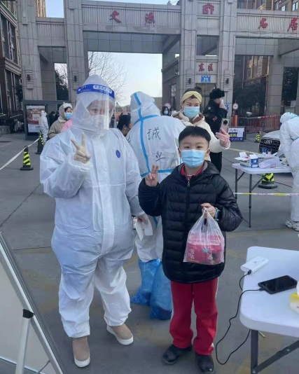 金鼎園小區(qū)配合社區(qū)工作,擔(dān)負(fù)起其他兩個小區(qū)全員核酸檢測任務(wù),工作量非常大。杜春輝就動員懷孕在家休養(yǎng)的愛人高寧寧到金鼎園當(dāng)志愿者。高寧寧來到項目后幫助物業(yè)維持秩序,協(xié)助醫(yī)護(hù)人員做核酸檢測。小區(qū)的業(yè)主得知后,都被她的精神所感動,小區(qū)業(yè)主、業(yè)委會、社區(qū)領(lǐng)導(dǎo)贊揚她為最美的志愿者。