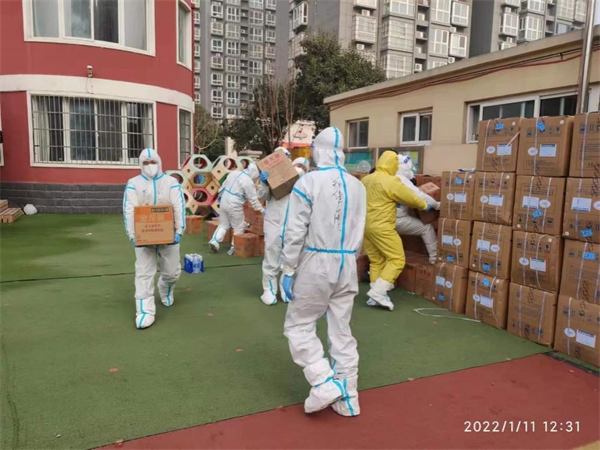 這次疫情發(fā)生之初,和園一期屬于封控區(qū),1月11日,為保障封控小區(qū)群眾的正常生活,特保大隊(duì)15名隊(duì)員在銀杏大街派出所所長(zhǎng)薛玉良帶領(lǐng)下?lián)?dāng)突擊隊(duì),將千余套生活物資挨家挨戶(hù)送到和園一期小區(qū)居民家中。