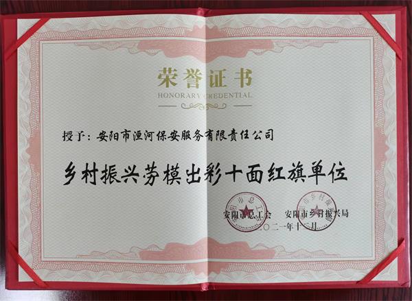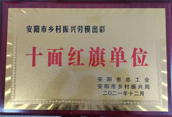 公司榮獲2021年安陽市鄉(xiāng)村振興勞模出彩“十面紅旗單位”榮譽稱號