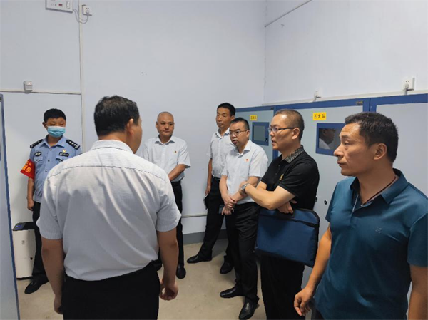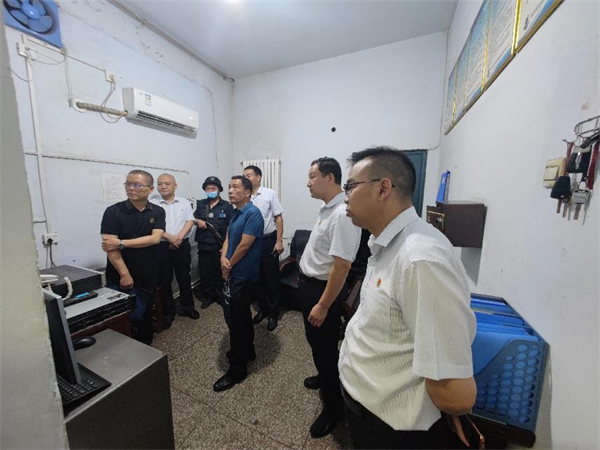 根據(jù)保安監(jiān)管工作夏季治安打擊整治“百日行動”專項督導(dǎo)檢查工作方案要求,8月18日下午,由三門峽市公安局峽東分局督察大隊長賈獻(xiàn)軍、原陽縣公安局治安大隊長李偉、義馬市公安局治安大隊教導(dǎo)員楊文峰、河南同盟保安服務(wù)有限公司副總經(jīng)理劉紅組成的全省保安監(jiān)管工作專項督導(dǎo)檢查組在安陽市治安支隊保安監(jiān)管大隊隊長齊超杰的陪同下,蒞臨公司檢查指導(dǎo)。公司黨委書記、董事長王高峰,總經(jīng)理魏東,副總經(jīng)理孫國濤、李樞林和守押分公司經(jīng)理張合印等陪同檢查。