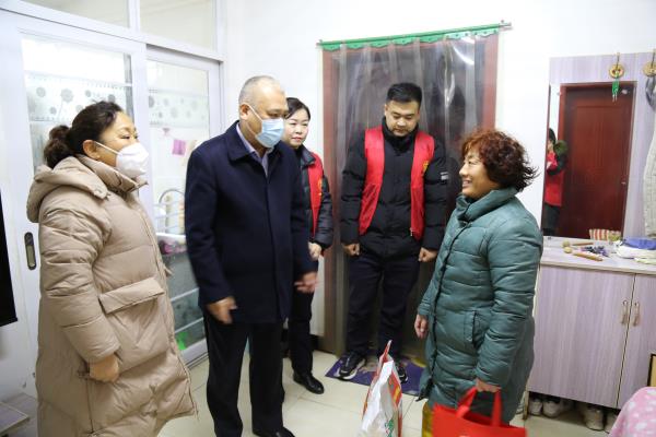 這邊義寫春聯(lián)活動(dòng)熱火朝天地開展著,另外一邊魏東和志愿者在社區(qū)書記郝艷紅的陪同下,帶著慰問品到孤寡老人家中,與他們親切交談,噓寒問暖,了解他們的生活近況,關(guān)切的詢問他們的健康狀況和生活需求,并送上了節(jié)日慰問品和真摯的新春祝福。