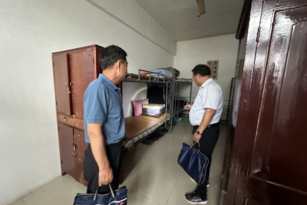王傳杰詳細詢問了公司安全生產(chǎn)管理制度建設、消防設施設備安全及防汛應急維穩(wěn)安排等有關情況。檢查組認真翻閱了公司安全生產(chǎn)月活動開展臺賬,并深入職工餐廳、員工宿舍,針對食堂環(huán)境衛(wèi)生及安全、宿舍電器及電路、燃氣管道及消防設施設備等進行全面檢查。