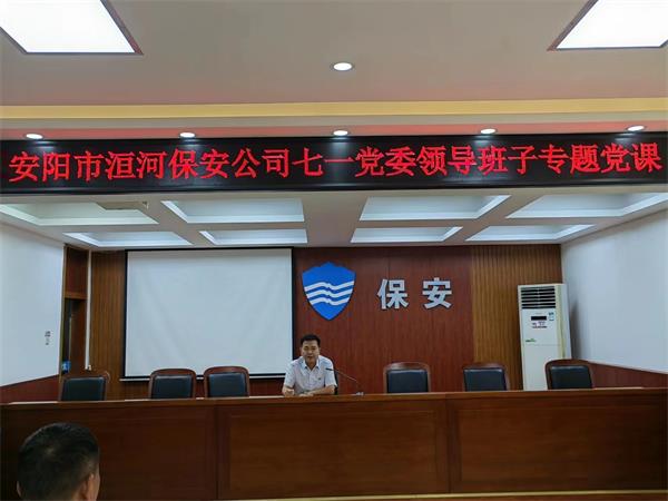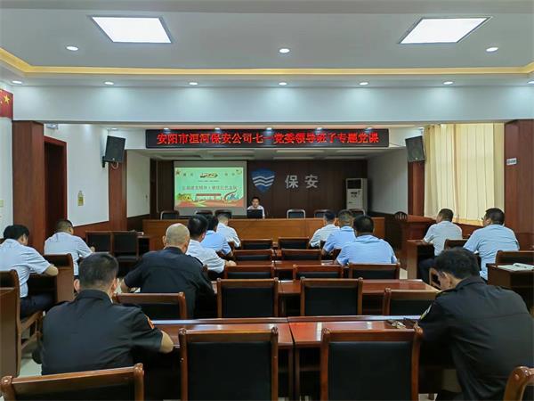 黨課上,孫國濤同志圍繞黨的基本知識、黨的光輝歷史、建黨102周年以來的成就、弘揚建黨精神四個方面展開講授。他強調(diào),全體黨員干部要繼續(xù)弘揚光榮傳統(tǒng)、賡續(xù)紅色血脈,把偉大建黨精神繼承下去、發(fā)揚光大;要在弘揚偉大建黨精神中,進一步強化責(zé)任擔(dān)當(dāng),做到擔(dān)當(dāng)實干,奮勇爭先;要緊扣高質(zhì)量發(fā)展的時代主題,把黨建與業(yè)務(wù)高度融合,全面拓寬業(yè)務(wù)增長新思路、新方法,持續(xù)提升保安品牌競爭力。