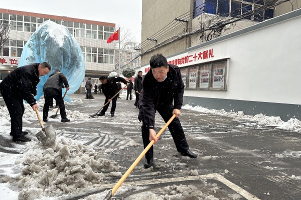 飛雪飄飄凜冬至,銀裝素裹競妖嬈。昨日的降雪,將市區(qū)裝扮得銀裝素裹。但厚實(shí)的凍雪使路面濕滑,給群眾和車輛帶來了極大的不便和安全隱患。為踐行全心為民服務(wù)的宗旨意識,為所有員工營造一個(gè)干凈、安全、便利的出行環(huán)境,12月11日一早,公司領(lǐng)導(dǎo)干部“以雪為令 向雪而行”,在辦公樓院內(nèi)及院外道路開展清冰除雪活動。