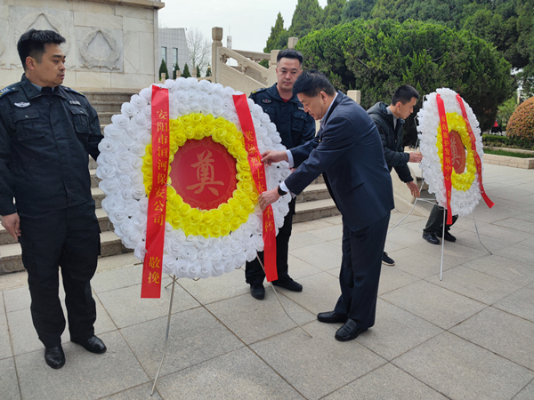 活動(dòng)現(xiàn)場莊嚴(yán)肅穆,同志們懷著崇敬的心情在革命烈士紀(jì)念碑前整隊(duì)肅立、舉行儀式。集體默哀后,張錫軍代表公司黨委向革命烈士敬獻(xiàn)了花圈并整理挽聯(lián),表達(dá)了對烈士的崇高敬意。