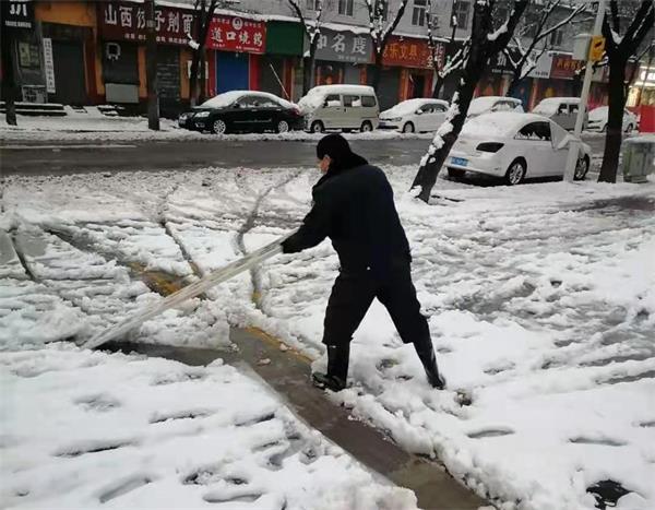 晨7時(shí),公司黨委副書記張錫軍帶領(lǐng)先到的同志開(kāi)始清理積雪。隨后陸陸續(xù)續(xù)到機(jī)關(guān)上班的公司黨委委員高代獻(xiàn)和石培瑞、張海林、侯典芹等同志,也自發(fā)紛紛加入了掃雪的隊(duì)伍。與此同時(shí),公司各二級(jí)機(jī)構(gòu)工作人員、服務(wù)崗點(diǎn)的保安員主動(dòng)作為,認(rèn)真清掃工作區(qū)域和門衛(wèi)周邊積雪。黨平同志因工具刺傷了手,鮮血直流,他卻全然不顧。