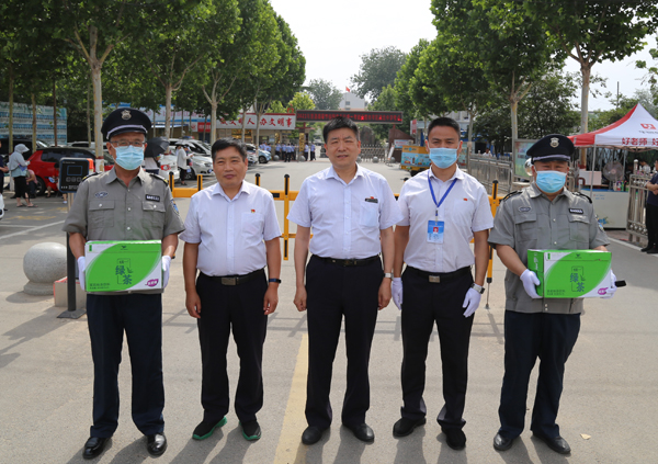 6月7日上午,2021年普通高校招生全國統(tǒng)一考試正式開考,公司黨委書記、董事長、總經(jīng)理王高峰,黨委副書記、工會(huì)主席張錫軍分別帶隊(duì)巡視市區(qū)高考考點(diǎn)安保工作,同時(shí)慰問執(zhí)勤保安員。王高峰指出,要強(qiáng)化責(zé)任擔(dān)當(dāng),周密部署、科學(xué)調(diào)度、協(xié)同配合,統(tǒng)籌做好疫情防控防控和安保工作,確保高考期間公司負(fù)責(zé)安保的各考點(diǎn)的安全有序。公司領(lǐng)導(dǎo)高代獻(xiàn)、魏東、楊克忠一同參加。