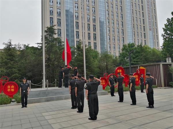 7月1日清晨7點(diǎn)40分安陽(yáng)市聯(lián)通公司大院內(nèi),聯(lián)通公司全體黨員干部、職工整齊列隊(duì),在這里隆重舉行“慶七一”升國(guó)旗儀式。一隊(duì)整裝威嚴(yán)、精神抖擻的特保隊(duì)員等候命令,伴隨著指揮員一聲“標(biāo)兵就位”口令拉開(kāi)了儀式序幕。