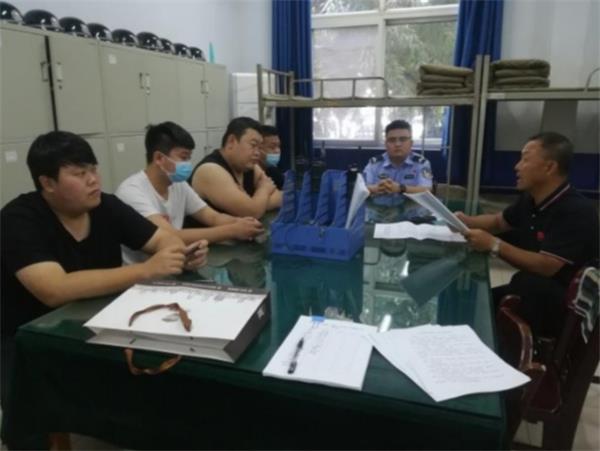 圖為副大隊(duì)長李衛(wèi)國給萬隆物業(yè)、石油公司崗點(diǎn)班長以上人員傳達(dá)會(huì)議精神。