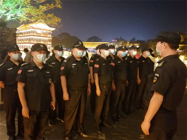 由于活動(dòng)在國(guó)慶節(jié)期間舉辦,又是安陽(yáng)古城倉(cāng)巷街網(wǎng)紅打卡地,逛街、游玩人員流量大的聚集區(qū)、人員復(fù)雜。為避免觀(guān)看區(qū)域人員發(fā)生擁擠、踩踏意外事故,人防五大隊(duì)會(huì)同人防分公司領(lǐng)導(dǎo)提前進(jìn)行兩次實(shí)地查看現(xiàn)場(chǎng),制定勤務(wù)方案、周密組織、精心部署,抽調(diào)有經(jīng)驗(yàn)的安保執(zhí)勤隊(duì)員參戰(zhàn),嚴(yán)格落實(shí)疫情防控措施,在安保工作中盡職履職,嚴(yán)格堅(jiān)持高標(biāo)準(zhǔn)和細(xì)致、精致的作風(fēng),樹(shù)好洹河保安形象。
