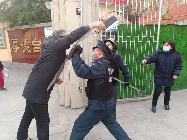 分公司對(duì)各大隊(duì)預(yù)案演練工作迅速安排部署,人防一大隊(duì)在熱電廠,人防二大隊(duì)在安陽橋小學(xué),人防三大隊(duì)在湯陰幼師,四大隊(duì)在銀杏小學(xué)、彰武小學(xué)等組織演練紅黃碼和暴力事件預(yù)案。演練中參加人員認(rèn)真,細(xì)致,謹(jǐn)慎、規(guī)范操作每個(gè)細(xì)節(jié)。四大隊(duì)龍安校園保安由學(xué)校師生共同參與,通過演練增長了隊(duì)員的認(rèn)知力,為學(xué)校疫情防控筑牢了一道保障。各大隊(duì)以班為單位利用周六,日休息時(shí)間,組織訓(xùn)練鋼叉操、盾牌操、擒敵拳等科目,增強(qiáng)實(shí)戰(zhàn)能力。