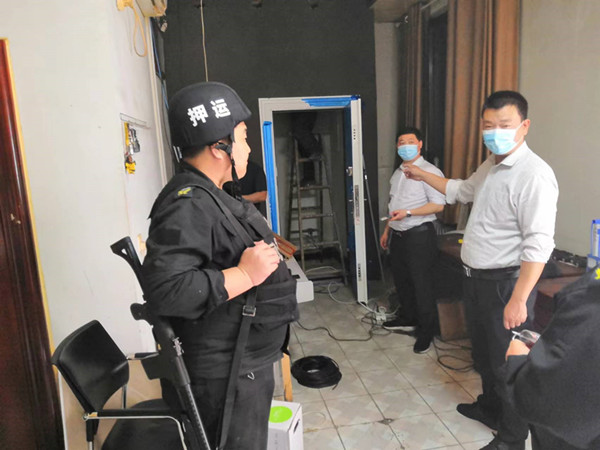 在改造過程中,大隊長楊中朝多次召開守庫工作例會,要求林州農(nóng)商銀行金庫隊員做好金庫施工中的安全工作。在施工中,大隊安排專人專門負(fù)責(zé)協(xié)調(diào)在金庫改造期間出現(xiàn)的施工問題,守庫員全副武裝做好金庫的安全警戒工作。