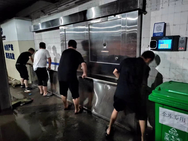 當晚,他們對地下室以及金庫門前實施防汛措施,隨著水位逐漸升高,隊員們各自就位提高警惕,按照預案要求,全力以赴保障金庫和內(nèi)部安全。