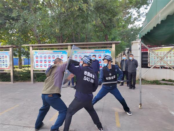 最后,袁學軍副校長對本次反恐防暴演練提出了表揚和肯定,他講到:本次演練很成功,場景很貼近生活,一切都是從實戰(zhàn)出發(fā),反映出了洹河保安的實力和專業(yè)性;整個演練過程緊湊,嚴肅而逼真,隊員配合默契,反映出了保安隊員過硬的軍事素質和嫻熟的處突能力;感謝人防五大隊對學校安保工作的大力支持和各參演人員的辛苦付出,學校連年取得的區(qū)“平安校園”榮譽,離不開你們默默無聞的付出。同時,勉勵全體隊員繼續(xù)努力,堅守崗位,與學校廣大師生一起迎接二十大勝利召開,確保校園安全穩(wěn)定。