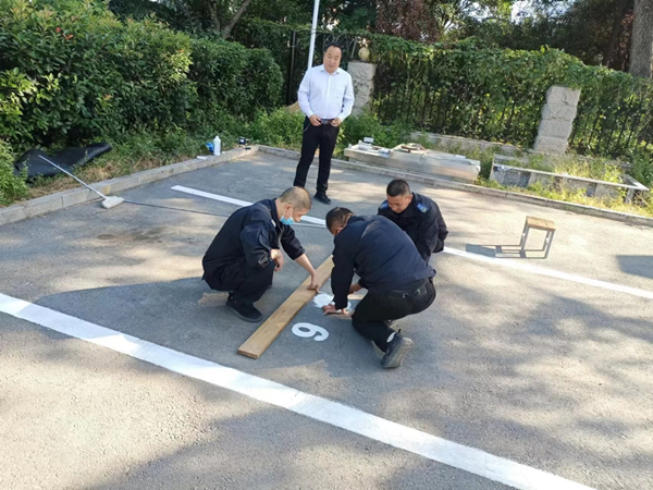 大隊長馮文峰帶領(lǐng)司機利用現(xiàn)有的工具,對停車位進行改造、編號。大家頭頂驕陽,面迎大風(fēng),用自己的辛勞和汗水鋪就了車輪下清晰寬敞的停車位。