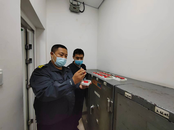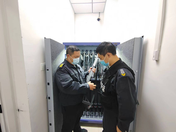 會(huì)后,大隊(duì)領(lǐng)導(dǎo)對(duì)槍支、彈藥保管柜進(jìn)行全面檢查。