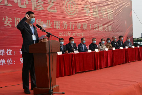 安陽市總工會四級調(diào)研員苗廣軍同志指出,本次職業(yè)技能大賽不僅是學(xué)習(xí)貫徹黨的二十大精神,弘揚勞動精神、勞模精神、工匠精神的重要舉措,也是提升職工技能水平的重要手段,同時,強調(diào)本次技能大賽既可以塑造廣大職工在“干中學(xué)”、“學(xué)中練” “練中賽”的骨干品格,彰顯勞動內(nèi)容,也是物業(yè)行業(yè)水平的大比武,職工素質(zhì)的大提升,希望參賽選手在比賽中展出風(fēng)格,賽出水平,在平凡崗位上進(jìn)行不平凡的事業(yè)。