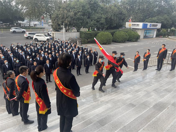 11月1日,建行安陽(yáng)分行舉行每月首日的升旗儀式。此次升旗儀式邀請(qǐng)?zhí)乇4箨?duì)大隊(duì)長(zhǎng)牛曉波主持,派駐建行門(mén)崗特保隊(duì)員為旗手,守押隊(duì)員協(xié)助