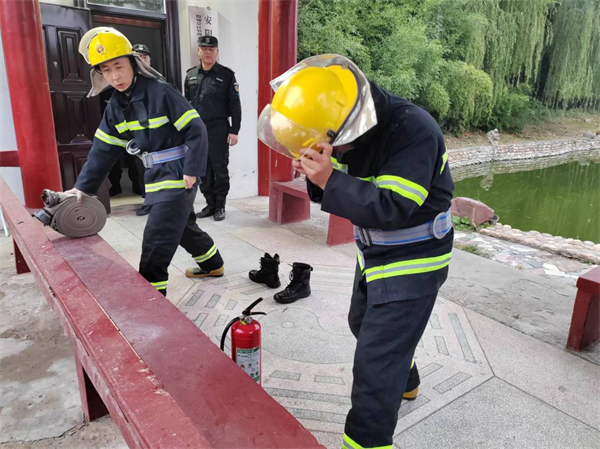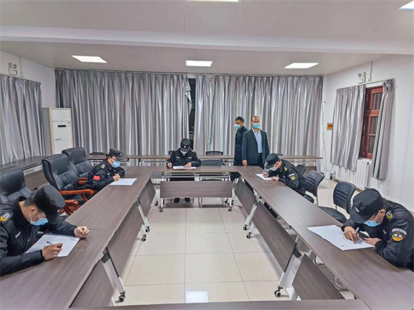 此次“大練兵”活動主要采取戶外集中演練和消防演習相結(jié)合的方式進行展示,其中演練項目包括隊列展示、擒敵拳、甩棍操等,他們動作規(guī)范、排面整齊、英姿颯爽。考核組按照文件要求按照比例對隊員進行筆試。