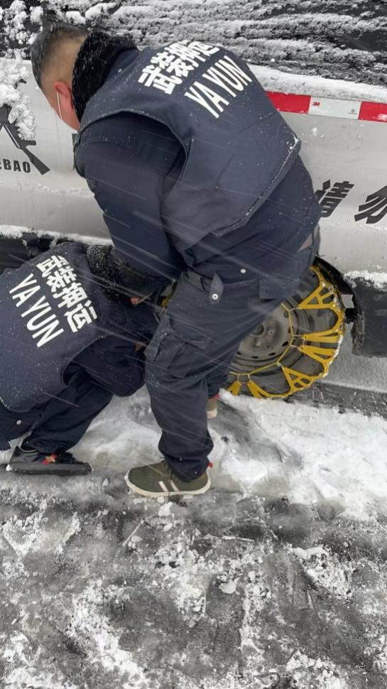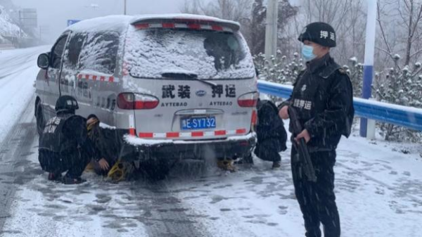 早上點(diǎn)名前,大隊(duì)長(zhǎng)楊中朝就通過大隊(duì)微信工作群向各行中隊(duì)傳達(dá)了指示。一是要根據(jù)路況,精準(zhǔn)研判,行車中減速慢行,不超車,車上備足兩套防滑鏈,對(duì)于上下坡路段積雪嚴(yán)重的要及時(shí)進(jìn)行安裝防滑鏈,確認(rèn)安全后再行駛。二是針對(duì)銀行網(wǎng)點(diǎn)的路況要及時(shí)和銀行網(wǎng)點(diǎn)進(jìn)行溝通,車輛行駛不到的要及時(shí)進(jìn)行上報(bào),通過與銀行網(wǎng)點(diǎn)聯(lián)系,做到延遲送達(dá)或者暫不運(yùn)送,謹(jǐn)記安全第一。三是要根據(jù)上午運(yùn)送的線路路況,對(duì)下午的出車接款時(shí)間做出調(diào)整,通過與銀行網(wǎng)點(diǎn)的溝通聯(lián)系,適時(shí)提前下午出車的接款時(shí)間,力爭(zhēng)在晚上溫度下降前安全返回。
