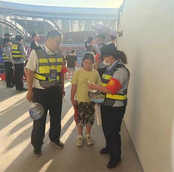 勤務(wù)實(shí)施前,大隊(duì)成立了大隊(duì)長王向煜任組長的安全保衛(wèi)工作領(lǐng)導(dǎo)小組,其他成員依照方案抽調(diào)執(zhí)勤力量,明確任務(wù)分工。勤務(wù)當(dāng)天下午,各執(zhí)勤單位提前到達(dá)預(yù)定位置集結(jié)到位,整理隊(duì)伍分發(fā)裝備,按時(shí)進(jìn)入執(zhí)勤崗位。除安排20人編入應(yīng)急機(jī)動(dòng)隊(duì)外,其余負(fù)責(zé)D1和E1區(qū)觀眾席的秩序維護(hù)。面對炎炎烈日,大家毫無怨言,依然堅(jiān)守崗位,對具體崗位任務(wù)落實(shí)到具體人員。給群眾提供了力所能及的幫助。下午6點(diǎn)半,李會芳發(fā)現(xiàn)一女孩啼哭不止,便上前詢問。當(dāng)?shù)弥⑹桥c家長走失時(shí),報(bào)告帶隊(duì)領(lǐng)導(dǎo)尚斌,并幫她打電話聯(lián)系到家長,使其與家人團(tuán)聚。