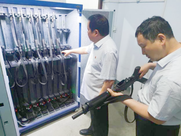 自查過程中,殷成軍重點(diǎn)檢查了槍支彈藥的維護(hù)保養(yǎng)情況,并對(duì)大隊(duì)槍彈庫、金庫出入臺(tái)賬,庫房電路、監(jiān)控等設(shè)備的運(yùn)行狀況進(jìn)行查看;隨后又對(duì)押運(yùn)車輛車況、車輛消防器材狀況進(jìn)行一一排查,確保無帶病車上路。