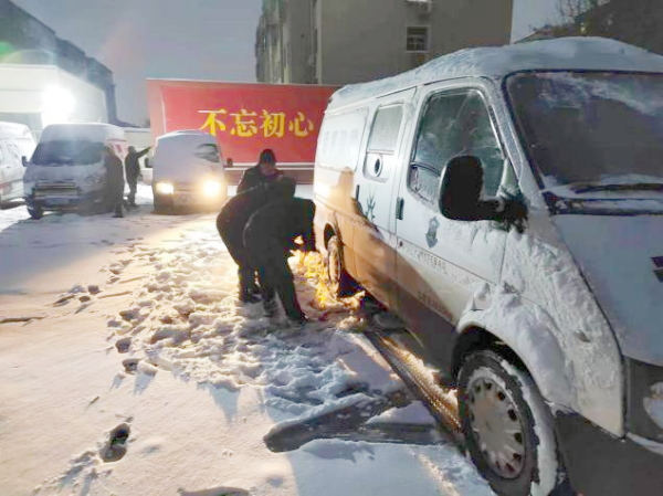 通過大家共同的努力,在勤務(wù)開始前,完成了安裝防滑鏈、清除積雪等工作,確保了大隊(duì)勤務(wù)的安全順利運(yùn)行。