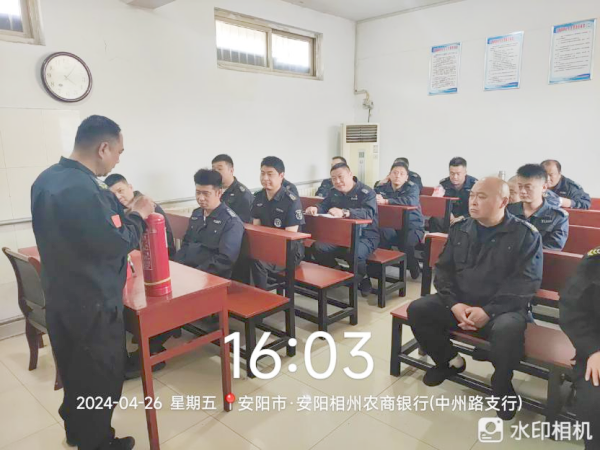 為確保五一節(jié)期間押運(yùn)工作安全,4月26日,守押十二大隊(duì)相州農(nóng)商銀行中隊(duì)進(jìn)行消防安全知識(shí)培訓(xùn)。