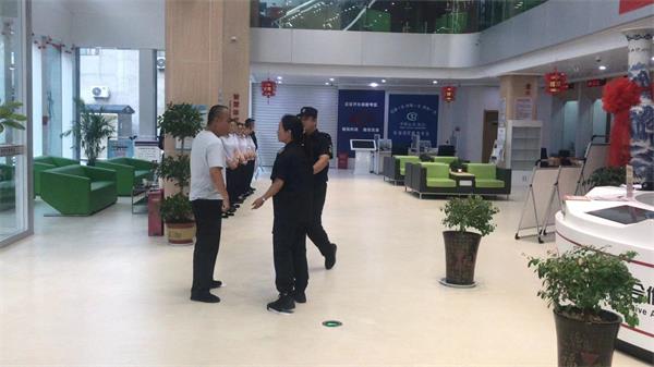 培訓結束后,演練正式拉開帷幕。模擬場景一,一名客戶因飲酒過量在銀行大廳內鬧事。大廳保安迅速反應,運用專業(yè)的溝通技巧和溫和的態(tài)度,耐心安撫鬧事者情緒,同時與大堂經理相互配合,將其引導至休息區(qū)域,并遞上溫水幫助其緩解醉酒狀態(tài),及時化解了可能引發(fā)的沖突與安全隱患,展現出高度的職業(yè)素養(yǎng)和專業(yè)能力。