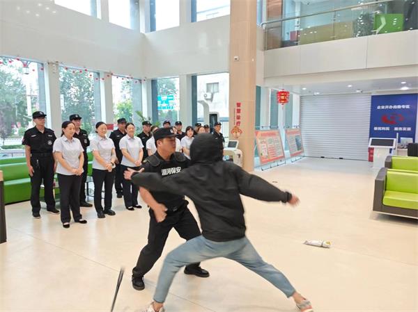 7 月 11 日下午,為進一步強化銀行安全保衛(wèi)工作,提升保安人員應急處置能力,人防五大隊駐內黃聯(lián)社中隊組織開展了一場別開生面的銀行大堂保安防搶劫演練。