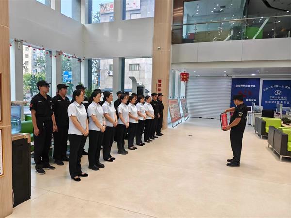 在演練開始前,中隊長許艷龍首先對大廳保安和大堂經理進行了簡單卻實用的消防培訓,內容涵蓋火災預防知識、初期火災撲救方法以及消防器材的正確使用等,為銀行日常安全運營增添了一份保障。