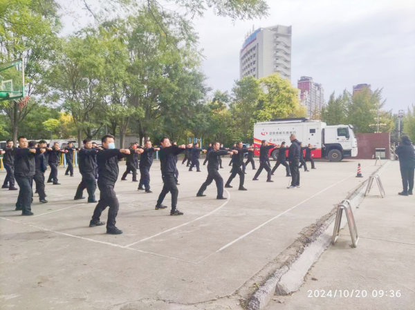 為迎接公司“大比武”考核,10 月 20 日,守押十大隊組織大隊部和水冶中隊開展了一場緊張而有序的擒敵拳合練。