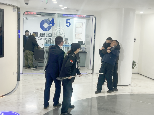 本次演練模擬了銀行員工在日常業(yè)務(wù)辦理過(guò)程中遇到歹徒搶劫的情景??蛻魝冋谟行蜣k理業(yè)務(wù),突然一名偽裝成普通客戶的“劫匪”手持兇器闖入大廳,企圖實(shí)施搶劫。面對(duì)這一突如其來(lái)的緊急情況,大堂經(jīng)理第一時(shí)間按下報(bào)警按鈕,并迅速通知安保部門報(bào)告情況。同時(shí),保持冷靜爭(zhēng)取時(shí)間等待警察到來(lái)。與此同時(shí),其他員工也迅速行動(dòng)起來(lái),有的則隱蔽地點(diǎn)記錄“劫匪”的動(dòng)向,以便為后續(xù)提供好的線索。網(wǎng)點(diǎn)安保人員與“警方”保持緊密溝通,協(xié)助警方制定救援計(jì)劃。在警方的精心部署下,最終成功將“劫匪”制服并帶離現(xiàn)場(chǎng)。