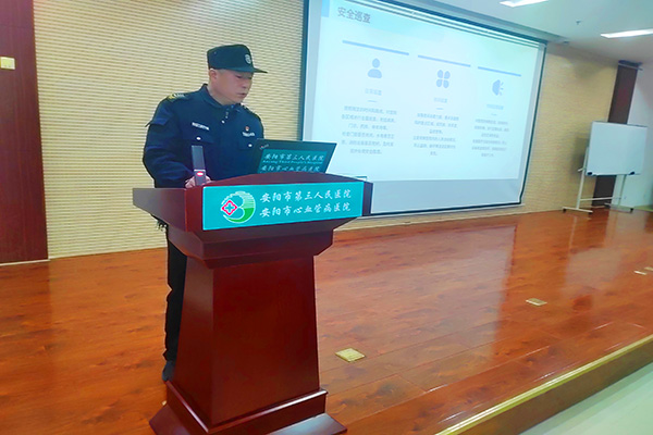 3月11日上午,人防二大隊(duì)教官楊承濤應(yīng)第三人民醫(yī)院之邀,在醫(yī)院行政報(bào)告廳為該院30余名安保人員開展崗位技能專項(xiàng)培訓(xùn)。副院長徐江海、保衛(wèi)科科長王惠偉和人防二大隊(duì)副大隊(duì)長張海林、尚斌參加。