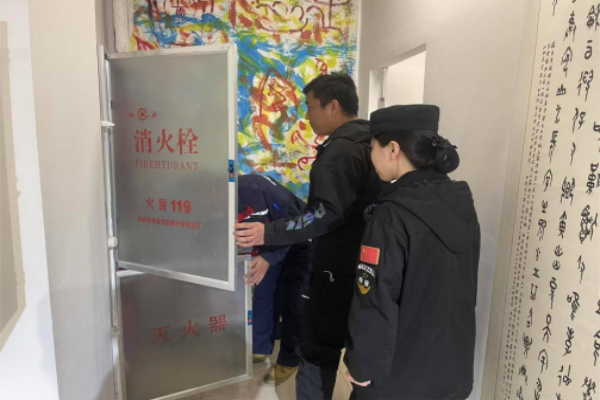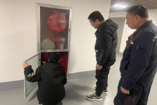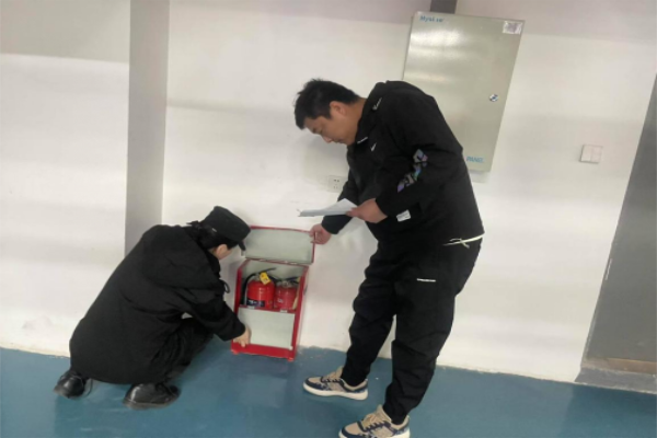 檢查期間,中隊(duì)長(zhǎng)李杰帶領(lǐng)特保隊(duì)員聯(lián)合物業(yè)人員組成檢查小組,對(duì)徽文館、博文館微型消防站內(nèi)消防設(shè)施、消防聯(lián)動(dòng)報(bào)警器、手動(dòng)報(bào)警器等設(shè)備進(jìn)行逐一檢查。測(cè)試了消火栓水槍壓力,對(duì)消防通道、安全出口、疏散通道是否暢通,應(yīng)急照明燈、疏散指示表是否配置齊全并保持完好有效,滅火器是否定期器材維護(hù)保養(yǎng)等情況進(jìn)行排查。