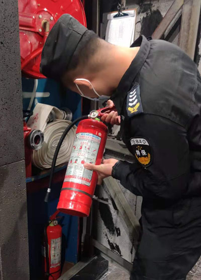 該中隊(duì)每日帶領(lǐng)當(dāng)班班長(zhǎng)和當(dāng)值特保隊(duì)員認(rèn)真檢查消防設(shè)備、電源開(kāi)關(guān)、插座插銷、有無(wú)私拉亂接現(xiàn)象、防疫物品是否到位等情況,消除安全隱患,確保年終倒計(jì)時(shí)期間零事故,確??蛻舭踩珶o(wú)事故。