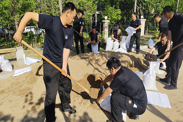 在班長李治國的帶領(lǐng)下,隊(duì)員們迅速進(jìn)入工作狀態(tài),現(xiàn)場分工清晰明確。大家各司其職,有的專注于裝填沙袋,有的仔細(xì)為沙袋扎口,還有的負(fù)責(zé)搬運(yùn)沙袋,整個(gè)防汛物資準(zhǔn)備工作忙碌而有序。盡管是休息時(shí)間,但隊(duì)員們始終保持著高度的責(zé)任心,以實(shí)際行動(dòng)踐行防汛使命。
