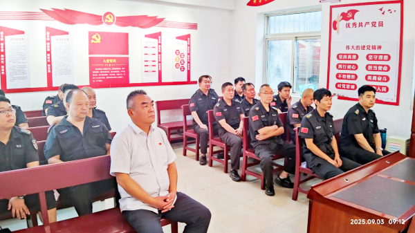 為慶??箲?zhàn)勝利80周年,9月3日上午,守押一大隊精心組織全體隊員集中觀看閱兵直播。