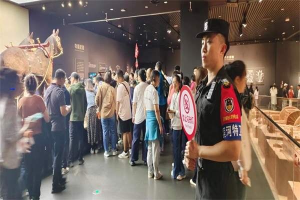 國(guó)慶中秋“雙節(jié)”期間,殷墟博物館、中國(guó)文字博物館、漢字公園、南大街等多個(gè)明星旅游點(diǎn)迎來(lái)客流高峰,博物館系統(tǒng)日接待量持續(xù)逼近60000人次限流上限。連續(xù)降雨天氣給安保服務(wù)工作帶來(lái)雙重考驗(yàn)。特保大隊(duì)以“護(hù)航文物安全、保障游客舒心”為核心,憑借全體隊(duì)員的高度責(zé)任感和出色表現(xiàn),實(shí)現(xiàn)了“零文物安全事故、零游客安全意外”的目標(biāo),得到客戶單位和廣大游客的高度贊譽(yù)。