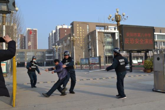 為切實(shí)強(qiáng)化校園安保工作,提升保安隊(duì)員對突發(fā)性暴力事件的反應(yīng)和處置能力, 3月15日,人防三大隊(duì)校園二中隊(duì)組織保安隊(duì)員在安陽市第八中學(xué)進(jìn)行了防恐安全演練。