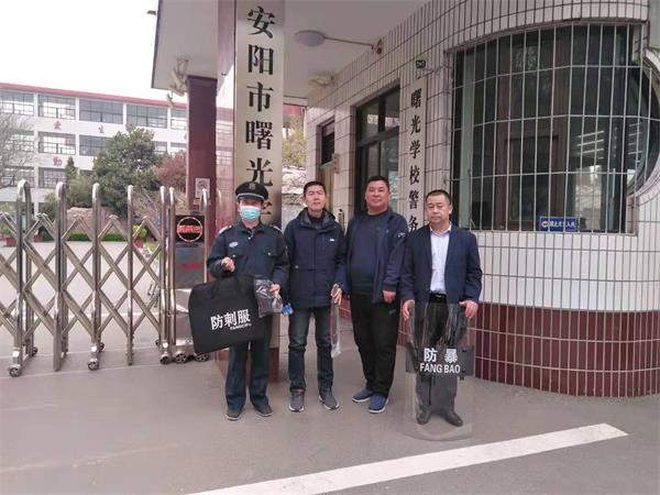 3月31日上午,人防三大隊(duì)副大隊(duì)長劉慶剛、校園中隊(duì)中隊(duì)長洪懷軍、班長趙付山一行,帶著頭盔、盾牌、鋼叉、防刺背心等安保器材,深入到各個(gè)校園進(jìn)行發(fā)放。