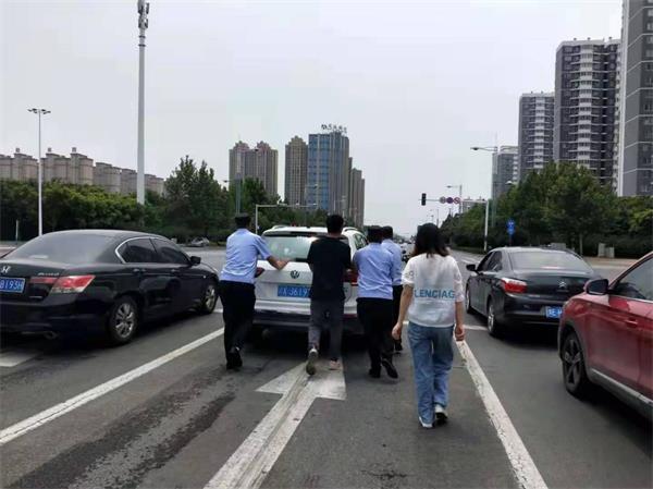 2021年7月2號上午11點(diǎn)50左右,人防一大隊(duì)高新區(qū)巡防隊(duì)楊銀書巡邏至黃河南路與中華路口,看見快車道上停著一輛外地車牌的白色汽車,開著雙閃警示燈,車后也未放安全警示牌。一名女同志站在路中間左右觀望非常焦急的樣子。疾駛的車輛從身邊穿過非常危險(xiǎn)。