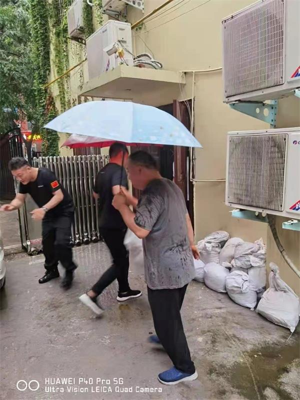 7月21日夜,為確保人員安全,大隊要求各崗除值班人員堅守崗位外,其他人員保持電話暢通,所有人員無特殊原因不要外出。各崗班、中隊長、值班人員在特大暴雨來臨之時,冒雨搬運沙袋加固崗位、用容器清理積水等應(yīng)對汛災(zāi)。截止22日暴雨過后,所有在崗隊員均自主或協(xié)助客戶完成防汛工作,隊員安全無事故。