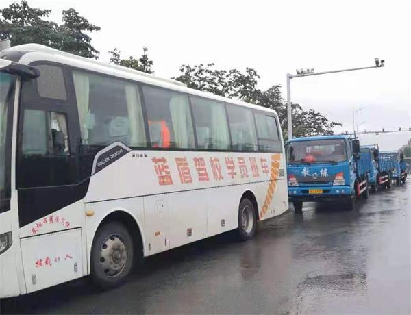7月21日上午10時(shí),藍(lán)盾駕校接到北關(guān)區(qū)政府指令后,立即組織學(xué)??购閾岆U(xiǎn)應(yīng)急隊(duì)30名員工、3輛貨車、1輛大巴車,迅速趕到平原橋南側(cè)集合待命。