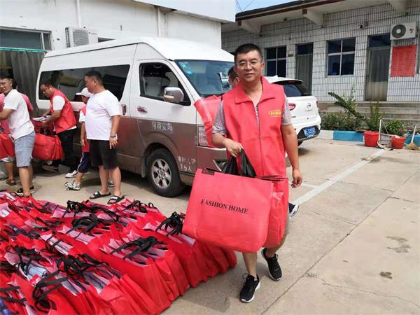 8月1日上午10時(shí),藍(lán)盾駕校的中巴車載著350條夏涼被駛?cè)胧転?zāi)嚴(yán)重的殷都區(qū)曲溝鎮(zhèn)陳家井村委會(huì),為村民們送來了急需的災(zāi)后生活用品。