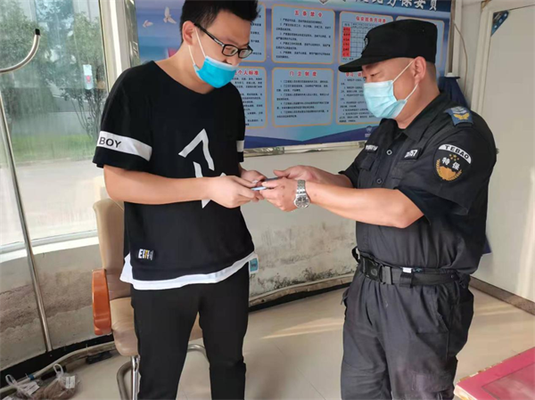 9月9日下午18時(shí)許,駐守在中國(guó)銀行人防一大隊(duì)隊(duì)員李勇在ATM自助設(shè)備附近執(zhí)勤巡邏時(shí),發(fā)現(xiàn)地上有部九成新手機(jī),他立即聯(lián)系了當(dāng)班負(fù)責(zé)人,并在原地等失主。等了半小時(shí)未果后,把這部手機(jī)交給班長(zhǎng)保管。一個(gè)小時(shí)后失主打來(lái)電話尋找手機(jī),得知是銀行保安拾到了非常欣喜。一會(huì)兒失主付先生趕到現(xiàn)場(chǎng),經(jīng)核對(duì)無(wú)誤后將手機(jī)領(lǐng)回,手機(jī)失而復(fù)得,付先生臉上露出燦爛的微笑,他激動(dòng)地說(shuō):“真的太感謝你們了,手機(jī)不值多少錢,但里面有很多照片和電話號(hào)碼不能丟啊。他對(duì)保安隊(duì)員的拾金不昧行為表示感謝!