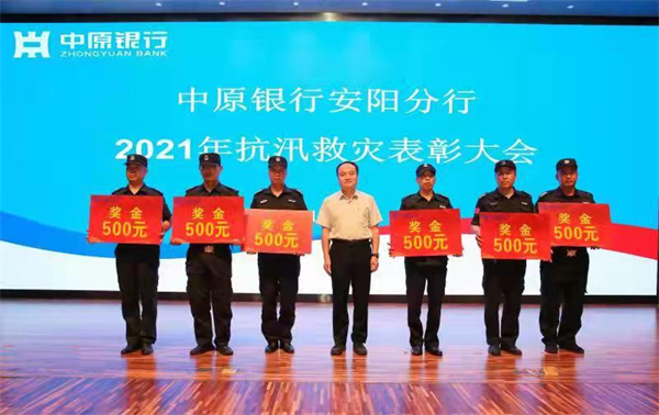2021年9月23日,中原銀行安陽分行在三樓報(bào)告廳隆重召開先進(jìn)表彰大會,分行領(lǐng)導(dǎo)班子、各支行行長和部門經(jīng)理全部參加,會議由分行紀(jì)委書記牛書記主持,表彰在“7.22”防汛救災(zāi)中表現(xiàn)突出的先進(jìn)集體和個(gè)人,大會表揚(yáng)了安陽市洹河保安服務(wù)公司駐分行人防四大隊(duì)保安中隊(duì)長田衛(wèi)順、郭海波等6位先進(jìn)個(gè)人,并每人發(fā)放獎(jiǎng)金500元。表揚(yáng)他們在大災(zāi)面前“困難時(shí)刻拉得出,危急時(shí)刻頂?shù)蒙?,關(guān)鍵時(shí)刻靠得住,決戰(zhàn)時(shí)刻打得贏”的防汛救災(zāi)精神。