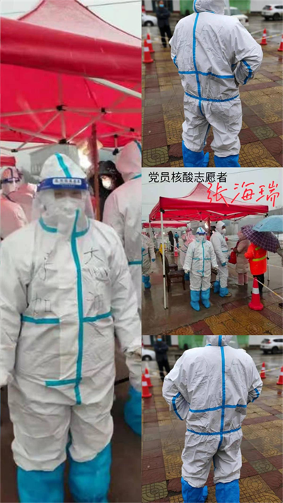1月10日早上,雨雪紛飛,為了能夠保證第一輪全民核酸檢測順利進行,凌晨五點鐘張海瑞和報名的志愿者們早早地來到檢測現(xiàn)場。為了高質(zhì)量、零風險的完成任務(wù),他們進行了采集前的個人防護等一系列專業(yè)培訓(xùn),積極配合醫(yī)務(wù)人員進行現(xiàn)場的各項工作,全民核酸時他們聽從醫(yī)護人員的協(xié)調(diào)安排,積極投入到工作中,細心的為群眾核對信息;為了加快采集速度縮短受檢人員的等候時間,他們顧不上休息,吃飯,經(jīng)過七八個小時緊張工作,最終科學(xué)、規(guī)范、高效的完成全村每一位人員的采集任務(wù)。