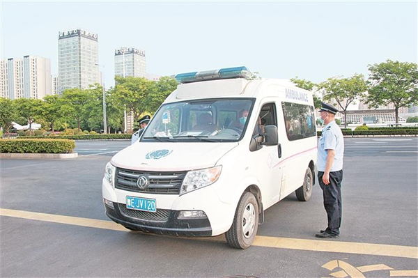 5月16日,戶永豐在市黨政綜合樓門崗值勤。